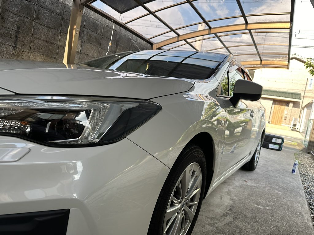 本日の作業1発目はインプレッサスポーツの磨き&コーティングです。昨日のお客様とは別です。