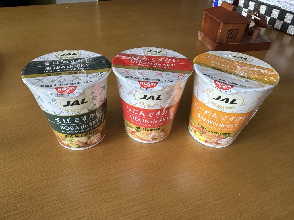JALの機内で頼むと用意してもらえる、そば・うどん・らーめんです。