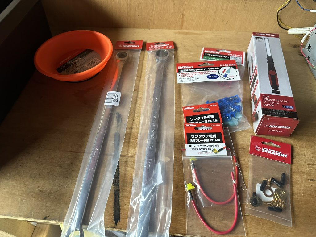 10月8日 2024.10.12 工具 本日は陸運局に行ってきました。 いつも陸運局へ行く際にはついでにストレートとアストロに行き、工具をチェックしてきます。 あったらいいなといろいろ見ていると結局たくさん買ってしまいますので無駄遣いしておりますが・・・ 電装使う物を中心に購入しました。 ストレートは電装品がまとめて売られており、とても便利です。結構数を使いますのでたくさんあっても困りません。 あとはLEDライトにマグネット付きのネジ入れ等を購入しました。 帰宅後は倉庫の整理を行ったり、道具を確認したりしました。 10月7日 前の記事 10月9日 次の記事