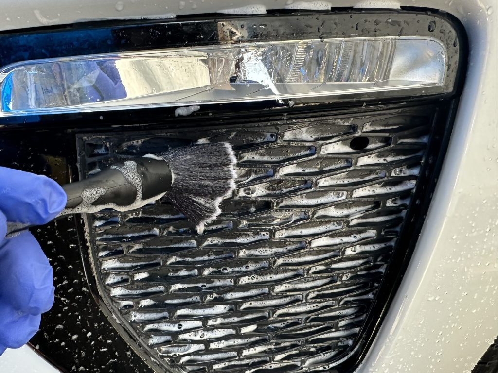 施工中 細かいところまでしっかり洗車を行っております。