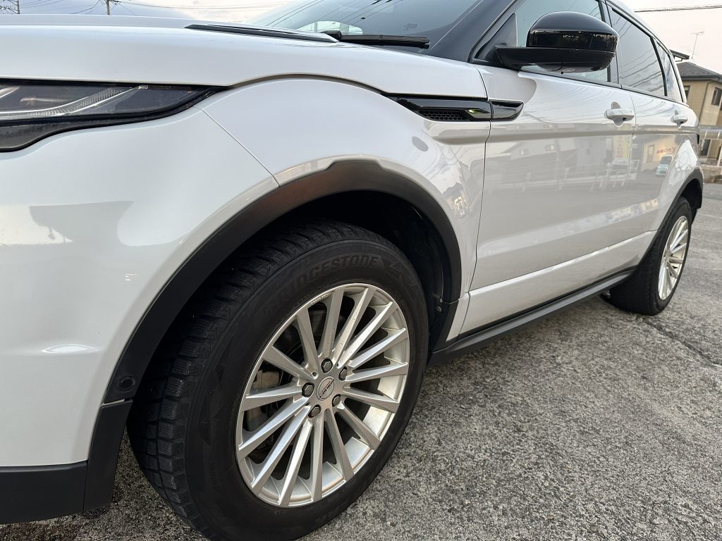 施工後 ホワイトカラーだからこその良さが出ております。タイヤワックスも塗ってあります。