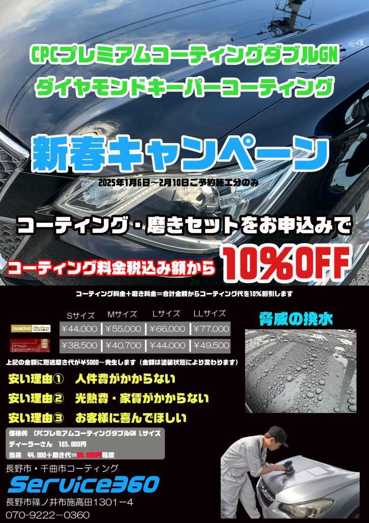とは言っても当店は1月より新春キャンペーンとして、コーティング10%OFFのキャンペーンを行います。