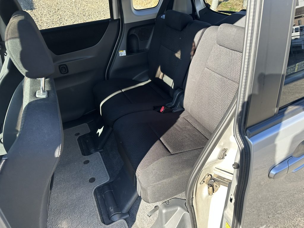 リアシートも綺麗です。リクライニングと前後に移動できます。そのため後部座席も広く感じますね。
