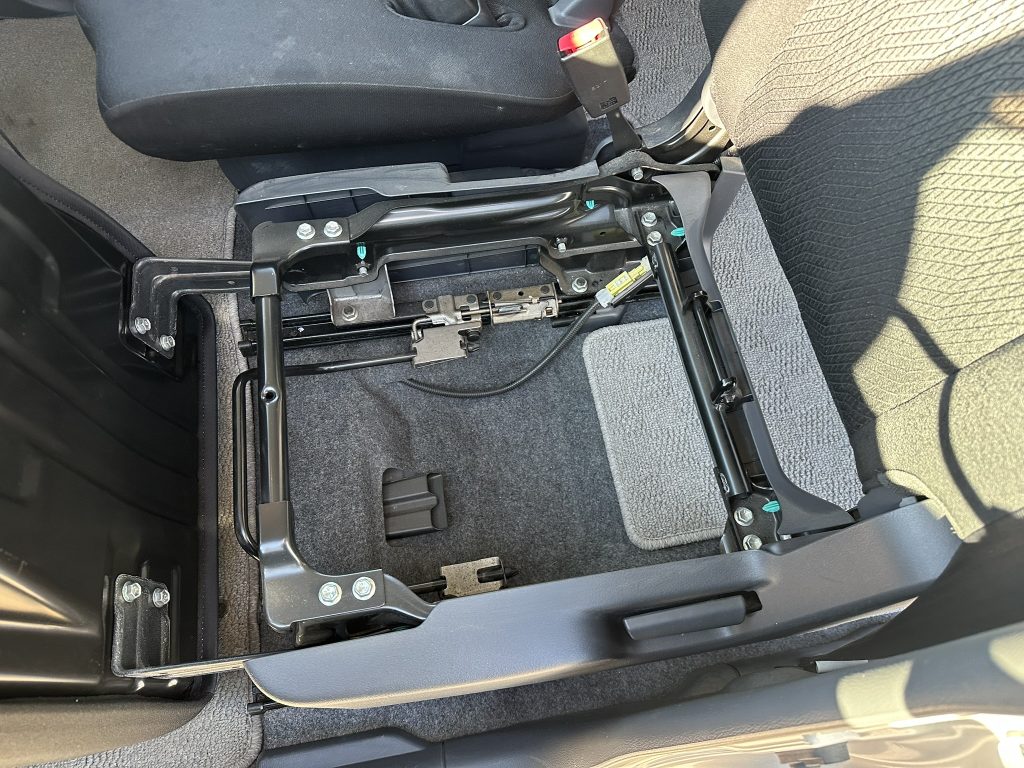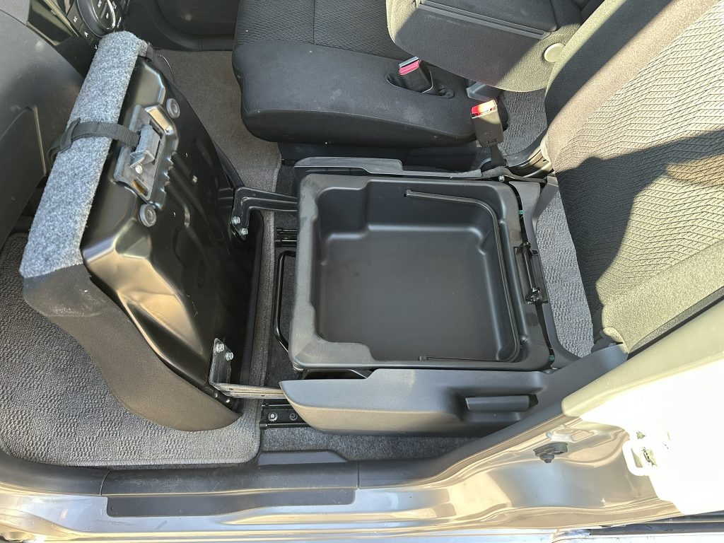 シート下収納ですが、ここに入れてカゴのように取り外しができます。