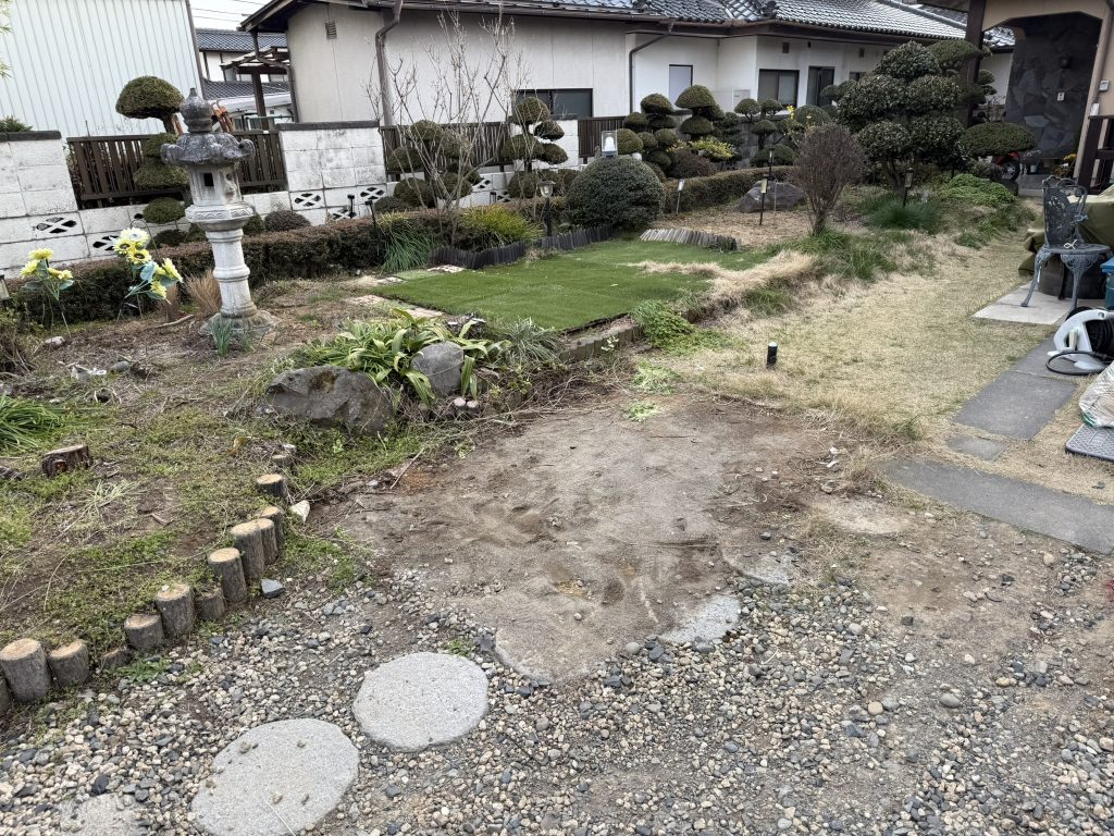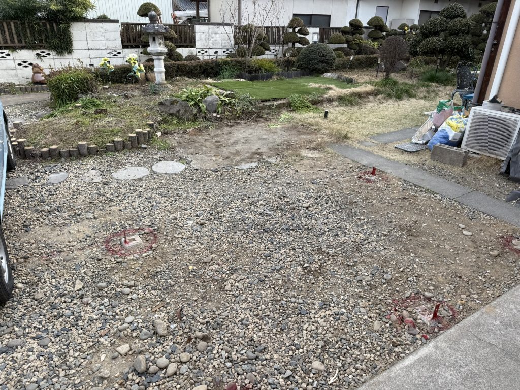 こちらは整地してアスファルトにします。軽自動車1台とバイクを置けるスペースにします。