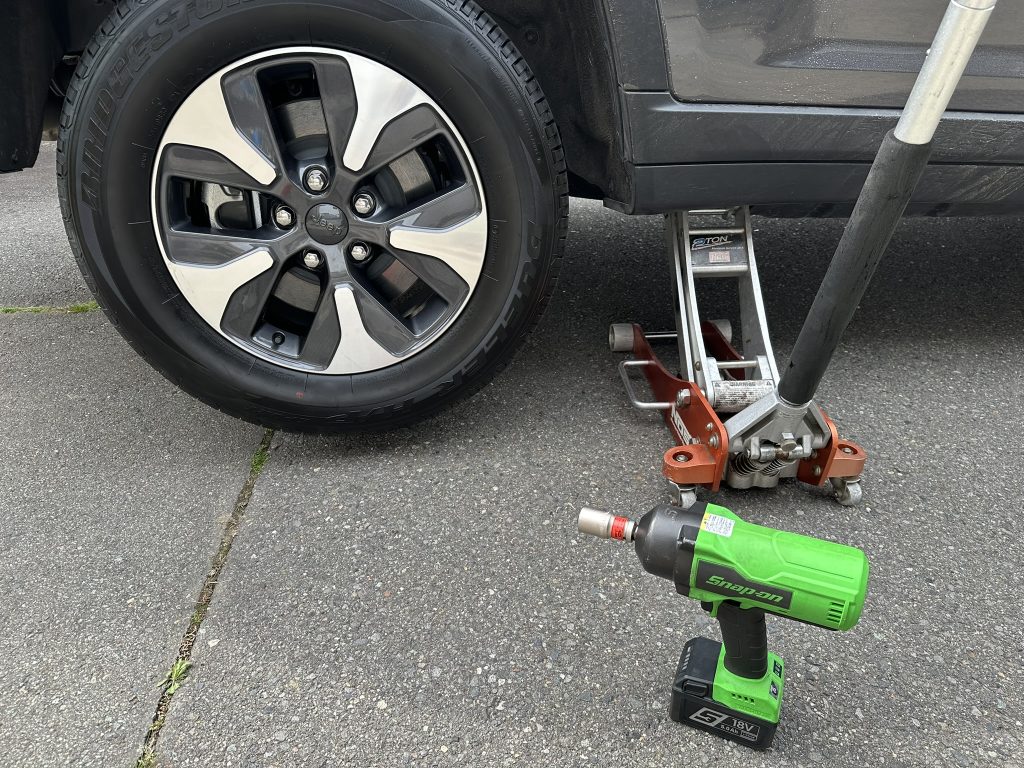 まずは写真のJeepのタイヤ交換に伺いました。Jeepは初めての作業になりましたが、事前にしっかり確認しておいたので問題無く交換出来ました。ご利用いただき、ありがとうございます。