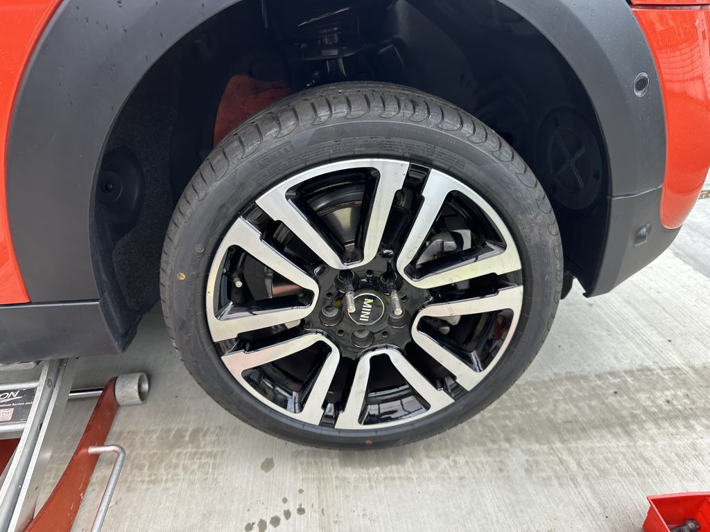 Miniに合うピレリのタイヤご注文いただき、ありがとうございました。カーポート内で作業させていただいたので雨には濡れず助かりました。