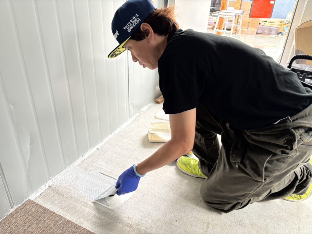 床を綺麗にしてからのりをしっかり伸ばして塗ります。刷毛がとても使いやすい。