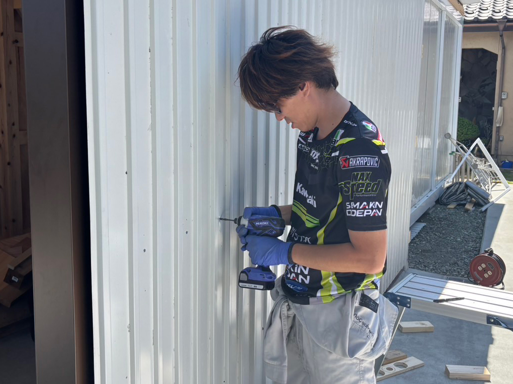 こんな感じに暑い中壁を取り付けました。いつも手伝ってくれる友人には感謝です。