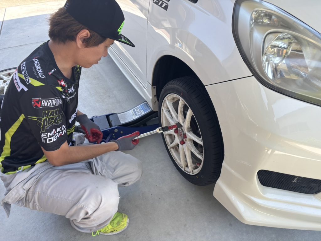 次にご購入いただいたタイヤを取り付けます。大変お待たせ致しました。