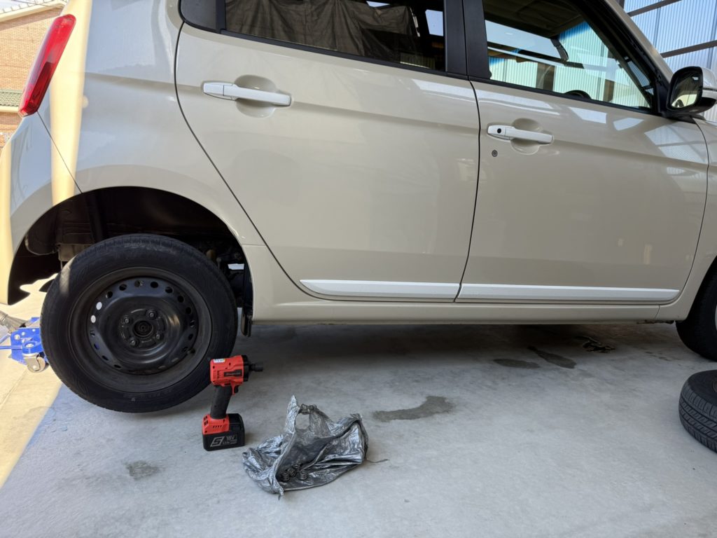 次はNoneのタイヤをご注文いただいておりましたので、タイヤを取り外ししてお預かりさせていただきます。