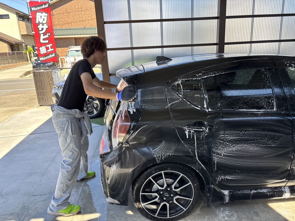 手洗い洗車を行いました。鉄粉がかなりの量が付着しており、後日研磨とコーティングをご依頼いただきました。