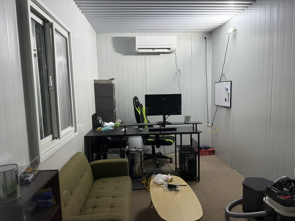 事務所内部もエアコンを取り付けて、パソコンデスクも置きました。