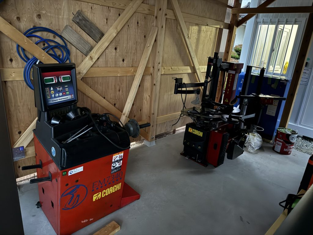 先日、タイヤチェンジャー・バランサー・コンプレッサーを設置しました。