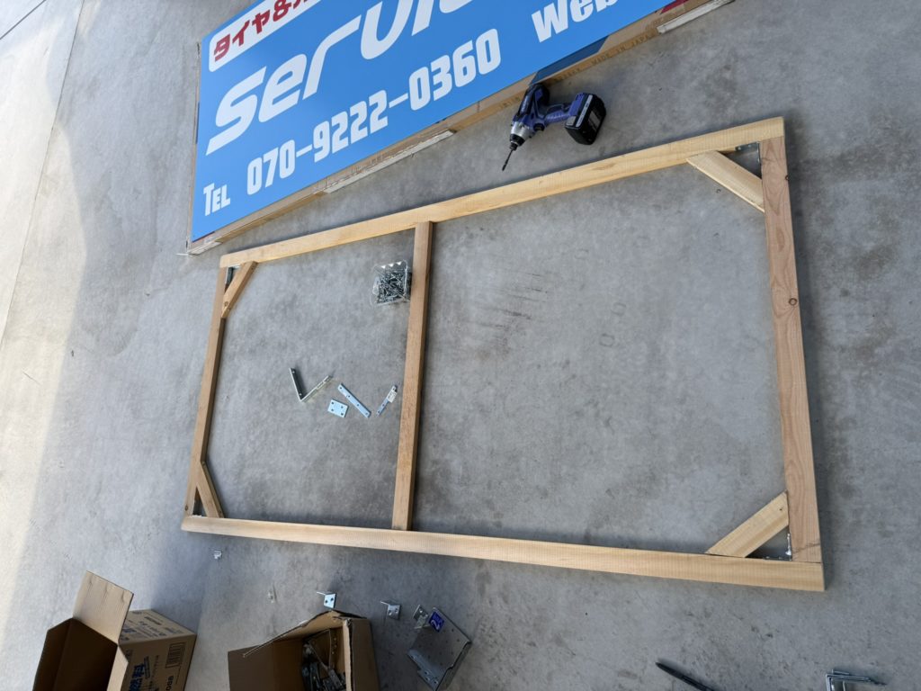 直に取り付け出来ないため、ベースやフレームを作って固定します。しかも屋根の勾配があるので看板が斜めにならないようにしっかり取り付けしないといけません。